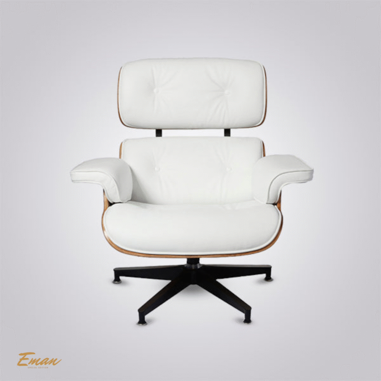 Classic Charles and Ray Eames Lounge Chair and Ottoman Replica – White Leather with Rosewood, Chrome or Black Base
